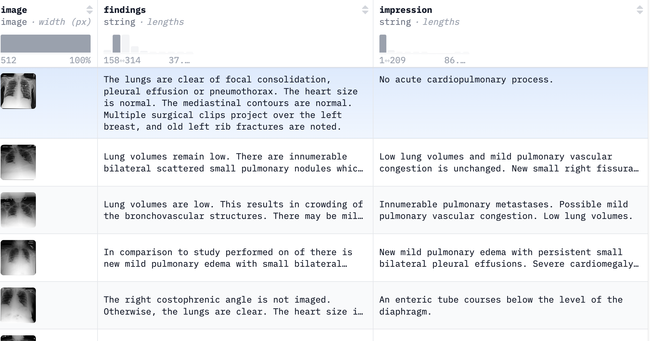 X-ray数据集调研 NIH-chest-Xray-14训练集 89.7k image:图片 label: 对疾病的分类 14 类胸部病变 + “无发现” MIMIC-CXR每一项研究不仅包含DICOM格式的影像,还配对有经过脱敏处理的完整自由文本放射学报告 X-ray数据集调研 http://cathylove47.github.io/2026/03/30/X-ray数据集调研/ 作者 cathy 发布于 2026年3月30日 许可协议 VQA方向 下一篇